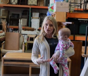 Furnish Hope Our second group of merry movers, loaded up the truck and zipped across town where we delivered beds, tables, chairs, sofas, kitchen ware and don’t forget stuffed animals. Pictured is Jamie ” I can do this myself” Garza who was determined to move everything in – in one fell swoop!