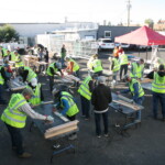 Volunteers from our Rotary club participate in bed-building days with Sleep in Heavenly Peace, where we build bunkbeds to be donated to families in need. Often, this will be the first real bed that kiddo has had to themselves. Starting with raw wood, we’ll typically have cut, sanded, stained, and assembled about 25 beds in a day, giving 50 kiddos a proper place to sleep.